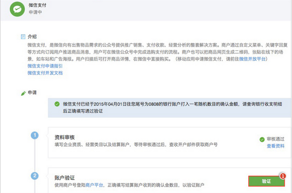 step1:登錄公眾平臺->微信支付->賬戶驗證