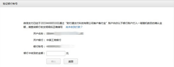 3、賬戶驗證(對公賬戶上收到騰訊的打款以后,開始驗證,打款一般是幾分錢)
