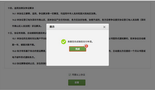 step6:登錄商戶平臺成功->賬戶設(shè)置->支付申請->簽署協(xié)議->簽署