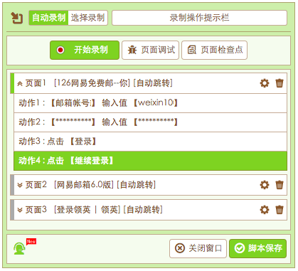 自動(dòng)錄制模式:只需要您在頁面上進(jìn)行操作,會(huì)自動(dòng)錄制您的所有操作;